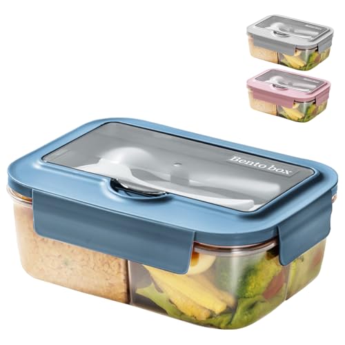 Sinnsally Lunchlåda med fack, 1 250 ml lunchlåda Bentolåda för vuxna, lunchlåda barn med bestick, vesperbox, brödlåda, läckagesäker matlåda, frukostlåda, matlåda (Bule)