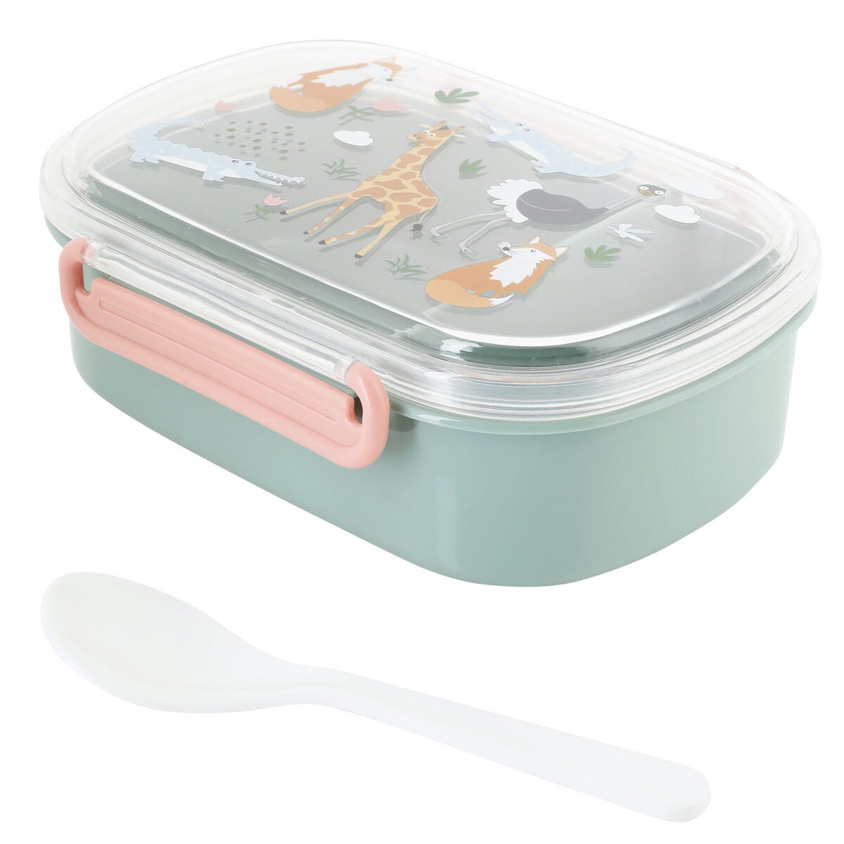Clas Ohlson Matlåda barn, med fack och sked, grön/rosa