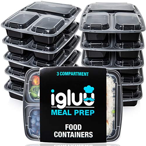 [10-pack] 3-fack BPA-fria återanvändbara matlådor – Måltidsförberedande matlådor i plast med lufttäta lock - Säker att använda i mikrovågsugn, diskmaskin och frys - Stapelbara Bento lunchlådor(946 ml)