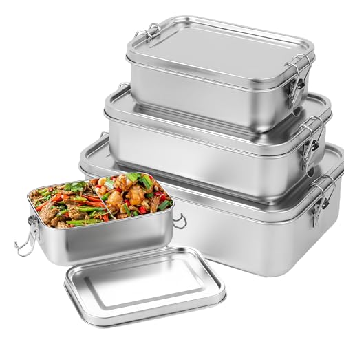 BORDEAG Matlådor i Rostfritt Stål - 850ml, 1400ml, 2400ml - Avtagbara Fack, Brödpall, Lunchlåda, Mellanlåda, Bentobox