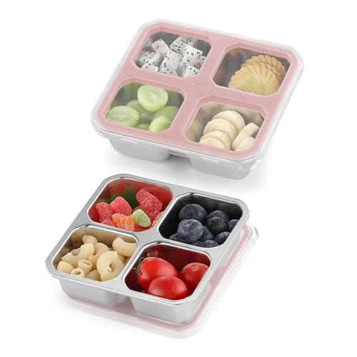 Misichao Rostfritt stål snackslådor med 4 fack | återanvändbara snacksbehållare liten Bento lunchlåda för barn vuxna uppdelade matlådor för skolarbete och resor 2-pack