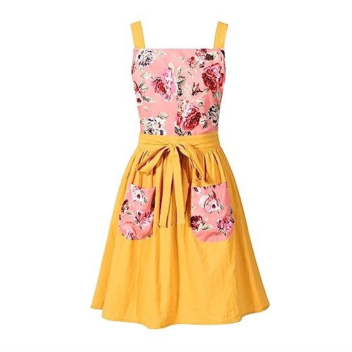 Pinknoke vintage pinafore förkläde klänning för kvinnor med fickor söta blommiga kockförkläden för kök matlagning bakning trädgårdsarbete, gul, medium