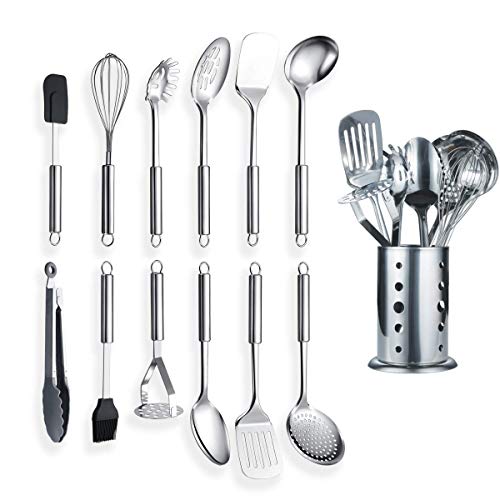 Berglander köksredskap i rostfritt stål 12 delar med 1 ställ, matlagningssked, köksredskap matlagningsredskap med hållare. 13 stycken