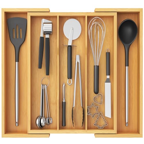 Lifewit Redskapsorganisatör för kökslåda, expanderbar matlagningsredskap, bambubestick bestickhållare, justerbar spatelverktyg och prylar förvaringsavdelare, stor, naturlig