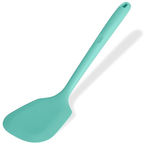 U-Taste Extra lång solid silikonspatel: 315 ℃ Värmebeständig köksspatel, sömlös non-stick gummimatklassad matlagningsredskap för stekning, pannkakor, fisk (Aqua Sky)