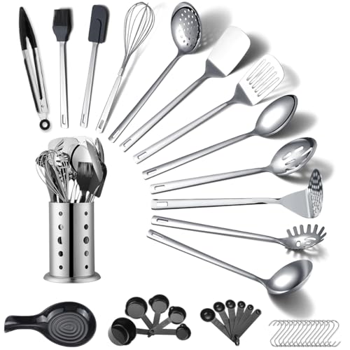 ReaNea Rostfritt stål köksredskap set 40 delar, matlagningsredskap set med redskapshållare, köksprylar köksnödvändigheter, metallspatel set