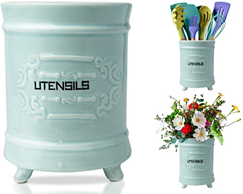 Fransk blå keramisk redskapshållare – vintage stil köksredskapslåda – antik design matlagningsredskap organisatör – rustik fransk lantlig redskap för matlagningsentusiast