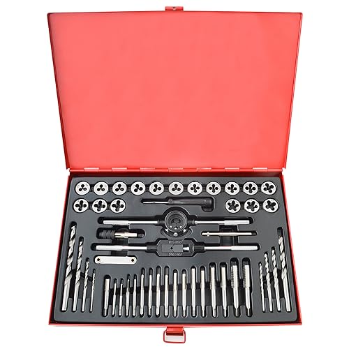Gunpla Set med 48 st kran- och matriser metrisk kraftig volframlegering stål skruvgängor skärverktyg avsmalnande borr gängningssats med röd metall förvaringsfodral