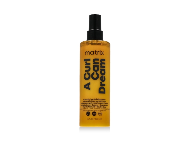 Matrix Leave-In Spray, för definierade vågor, med manuell honungsextrakt och rosenvatten, värmeskydd och anti-frizz-effekt, A Curl Can Dream Wave Scrunch N' Go spray, 1 x 250 ml