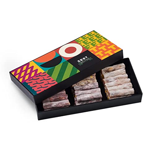 Zest Delites Gourmet Vegan Food Gift Box - Turkish Delight Candy Box, Orange, Vanilla, Pomegranate, Black Mulberry and Pistachio Nuts, Birthday Gift for Her & Him, Soft Candy Snack Box, 250g