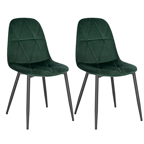 Lestarain Matrumsstolar, set om 2 med ryggstöd, för matsal, kök, vardagsrum, köksstolar vadderad med sammetsöverdrag, av metall, ergonomisk design, mörkgrön