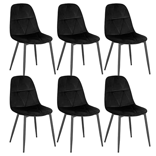 WOLTU Uppsättning med 6 matrumsstolar, köksstol, stol matsal vardagsrum, ergonomisk fåtölj, armstödsstol, stoppstol, sits av sammet, metallben, svart, EZS02sz-6