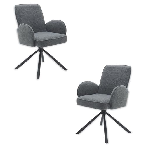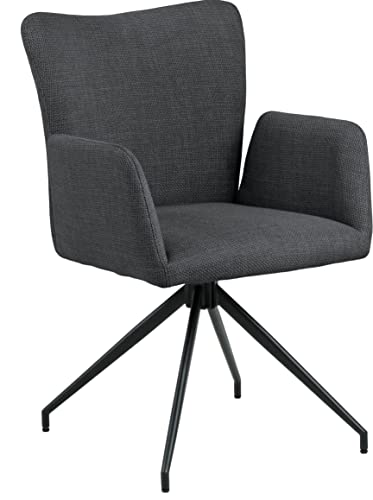 AC Design Furniture Laurikke Matrumsstolar, set om 2 i mörkgrå, köksstolar med vridfunktion, stoppade stolar i strukturtyg och svart metallfot, eleganta accentstolar, matmöbler