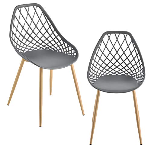 [en.casa] Designstuhl Set om 2 matrumsstolar av plast, vardagsrumsstol, skålstol, ryggstol med metallben i bokutseende, grå