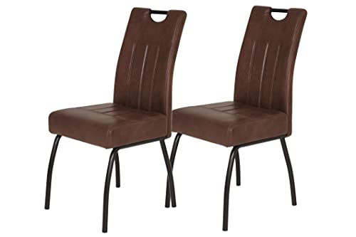 Uppsättning av 2 matrumsstolar, köksstol, metallram svart, överdrag mikrofiber brun, ryggstöd med handtag