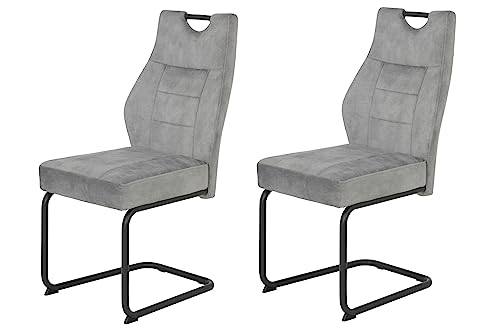 Stella Trading Malia Matrumsstolar, uppsättning av 2 med svart metallram, grå, bekväma stolar för matsal och vardagsrum, metall, 58 x 86 x 63 cm