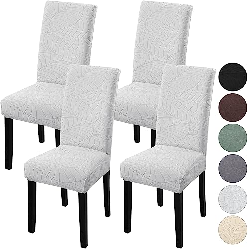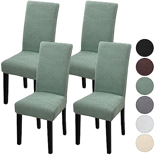 Fuloon Stolsöverdrag med jacquardblad, universellt stretchigt, modernt stolsöverdrag, elastiskt, avtagbart, tvättbart dra-på-överdrag för matrumsstolar, gungstol, set om 4