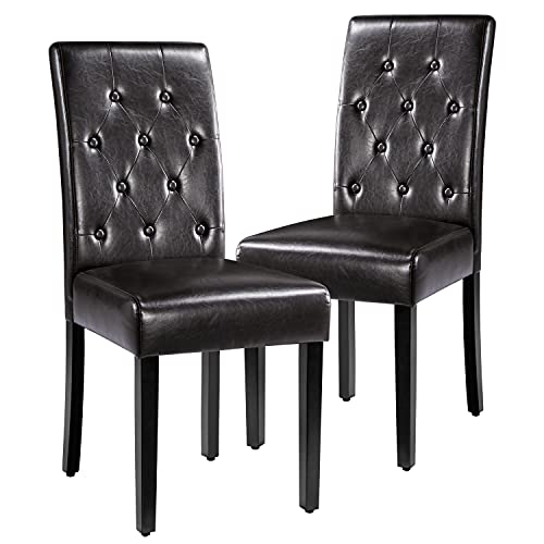 Yaheetech Matrumsstolar, set om 2 köksstolar, stoppade stolar med högt ryggstöd, ben av massivt trä, vadderad sits av konstläder, retrobrun
