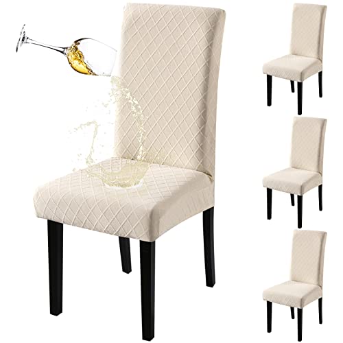 Homaxy Stolsöverdrag, set om 4, stretchöverdrag för stolar, stolsöverdrag för matrumsstolar, tvättbart skyddsöverdrag för stolar, beige
