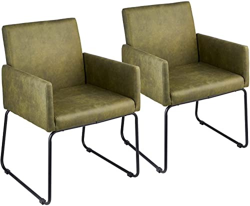 WOLTU Uppsättning av 2 matrumsstolar, köksstol, stol matsal vardagsrum, ergonomisk fåtölj, armstödsstol, stoppstol, sits av vintagekonstläder, metallben, mörkbrun, EZS03dbr-2