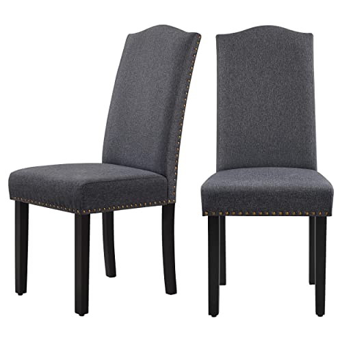 Yaheetech Matrumsstolar, set om 2, köksstolar med högt ryggstöd, moderna stolar för kök och matsal, ben av massivt trä, vadderad sits av linne som kan belastas med upp till 136 kg, mörkgrå