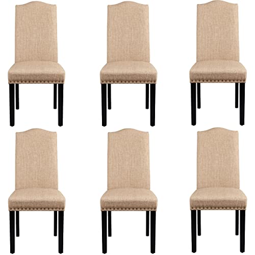 Yaheetech Matrumsstolar, set om 6 köksstolar med högt ryggstöd, moderna stolar för kök och matsal, ben av massivt trä, vadderad sits av linne, kan belastas med upp till 136 kg, kaki
