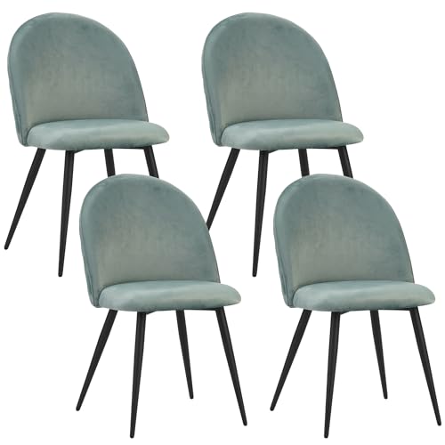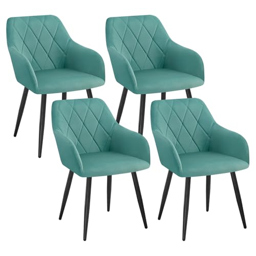 WOLTU Uppsättning av 4 matrumsstolar med armstöd ryggstöd, stol i matsal med sammetsöverdrag, bekväm stoppstol, köksstol med metallben, turkos, BH352ts-4