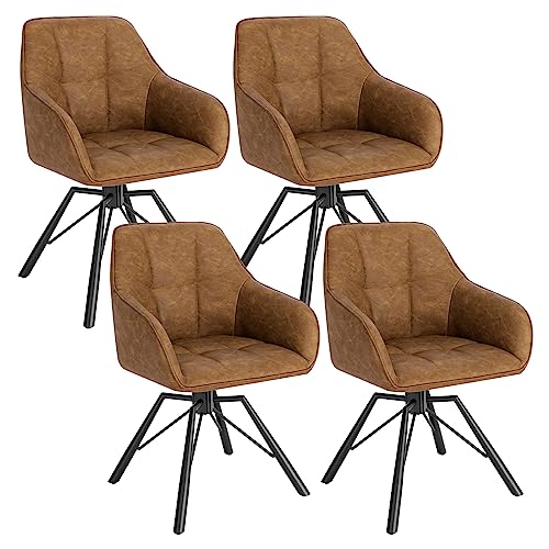 WOLTU Set med 4 matrumsstolar, köksstol, stol matsal vardagsrum, ergonomisk fåtölj, armstödsstol, stoppstol, sits av vintage-konstläder, metallben, brun, EZS03br-4