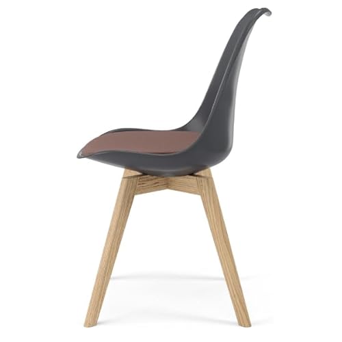 Stella Trading Grace Matrumsstolar uppsättning av 2 i läderutseende med svart metallram, antracit-moderna stolar för matsal och vardagsrum, 60 x 81 x 58 cm