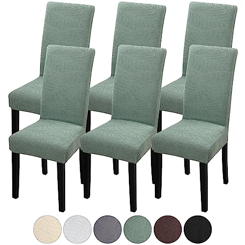 Fuloon Stolsöverdrag med jacquardblad, med bladmönster, stretchigt, modernt, elastiskt, avtagbart och tvättbart dra-på-överdrag för matrumsstolar/gungstolar, set om 6