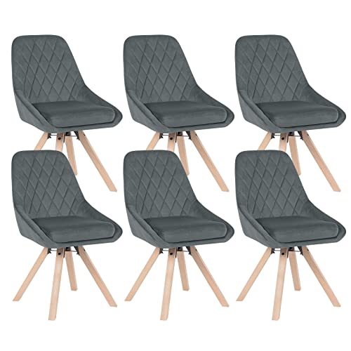 WOLTU Set med 6 matrumsstolar, snurrstol, köksstol roterbar, stoppad stol med sammetsöverdrag, vardagsrumsstol, designstol, ben av bokträ, mörkgrå, BH359dgr-6