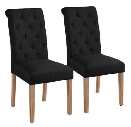 Yaheetech Matrumsstolar set om 2 köksstol klädselstol med högt ryggstöd, ben av massivt trä, vadderad sits av linne (svart)