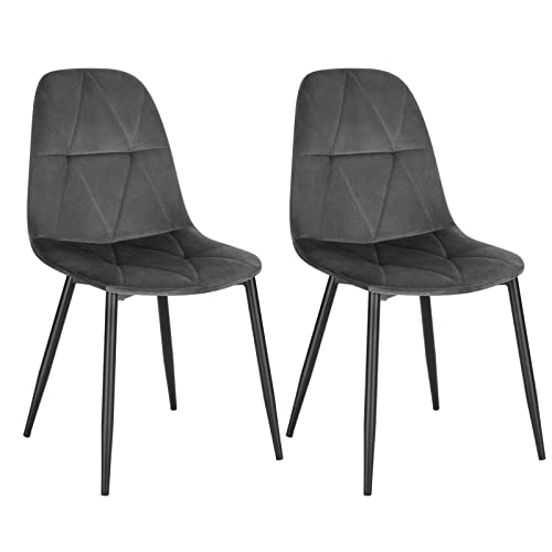 Lestarain Matrumsstolar, set om 2 med ryggstöd, för matsal, kök, vardagsrum, köksstolar vadderad med sammetsöverdrag, av metall, ergonomisk design, mörkgrå