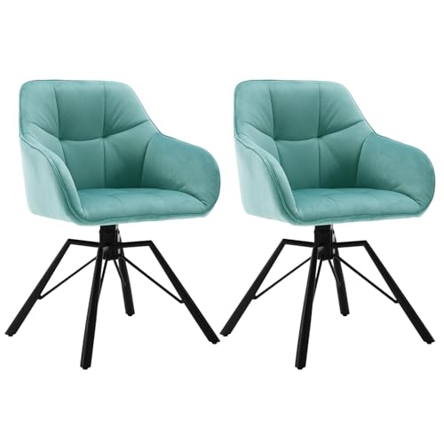 WOLTU Matrumsstolar roterbara set om 2, köksstol, stoppstol, snurrstol, bekväm stol med armstöd ryggstöd, armstödsstol för matsal vardagsrum, med sammetsöverdrag, turkisk grön, BH365ts-2
