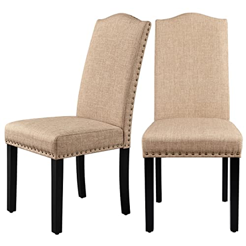 Yaheetech Matrumsstolar, set om 2, köksstolar med högt ryggstöd, moderna stolar för kök och matsal, ben av massivt trä, vadderad sits av linne, kan belastas med upp till 136 kg, kaki