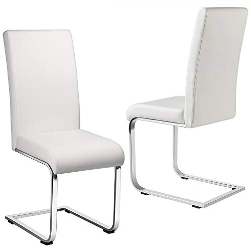 WOLTU Matrumsstolar set om 4, köksstol konstläder, med högt ryggstöd, stoppstol med metallben, för matsal matbord kök vardagsrum kontor, vit, EZS21ws-4