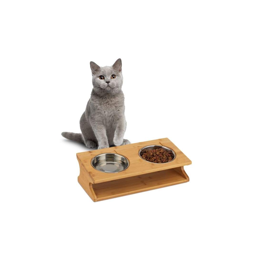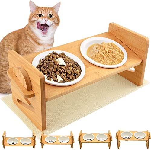 GHIAKQYT Upphöjda matskålar – kattmatningsstation 3 skålar upphöjd kattskål justerbar höjd matningsskål med stativ skålar i rostfritt stål för vattenmat – matskål för katter (bambu