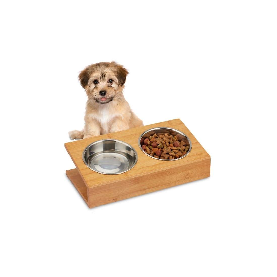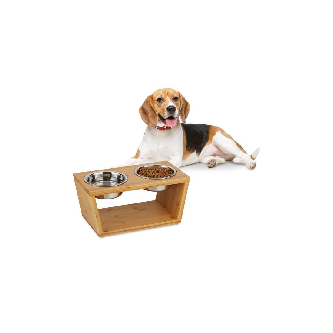Rosewood förhöjd hundskål för medelstora och stora hundar med ett stabilt, upphöjt stativ och två rostfria vatten- och matskålar, trä, stor