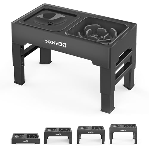 Upphöjda hundskålar, långsam matare och inget spill vattenskålstativ, upphöjda matskålar med 4 justerbara höjder för små medelstora hundar