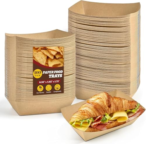 LATERN 100 stycken kraftpapper matskålar, 16 cm x 12 cm robust papper fartyg engångs servering bricka för pommes fritering nachos mellanmål het hund taco popcorn grillning picknick bröllop fest
