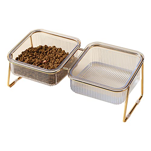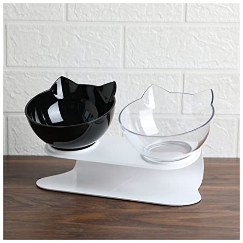 Djurskål Katt dubbelskål kattskål hund skål transparent glidande matskål med förhöjd hundmatare for att skydda cervikal ryggrad Matskålar för husdjur(Black-Transparent-2)