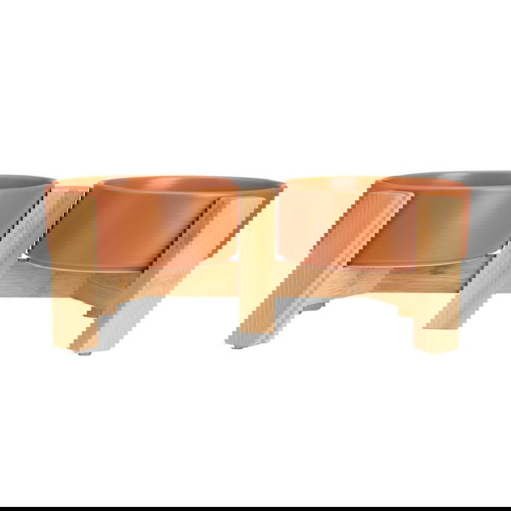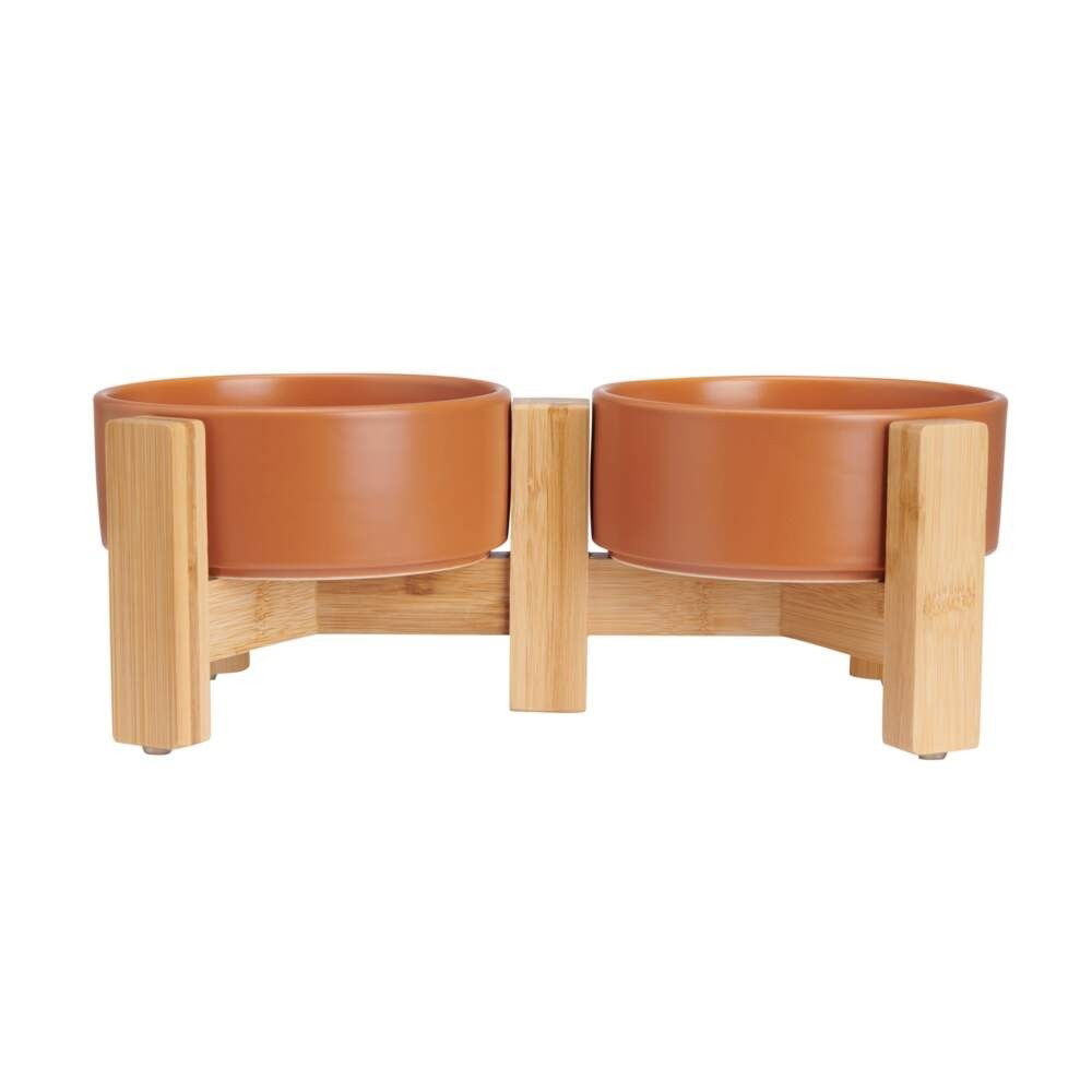Navaris matskål, matskålset av keramik - 2 x hundskålar, kattskålar, matskål med underlag av ekträ - matskålar för hundar och katter