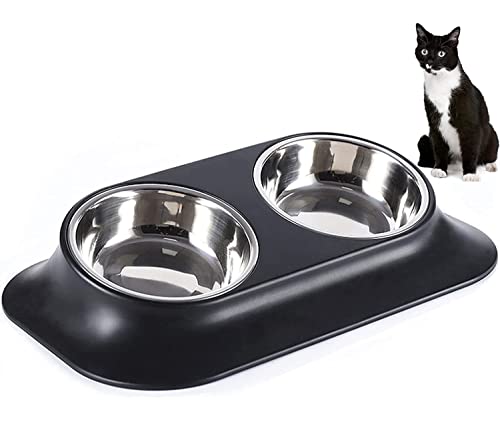 SUOXU Upphöjd kattskål husdjursskål, rostfritt stål upphöjda små hundskålar, 15°lutade morrhår lindrar trötthetsfri stress anti-kräkning katt matskålar, halkfria kattmatskålar (dubbel skål)
