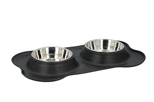 maxxpro Matskålar för husdjur med platå, stor – 46 x 27 x 4 cm – hund – rostfritt stål