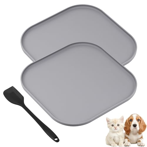 Hahorpa 2 st hund- och kattmatmattor, vattentät husdjursmatmatta med upphöjda kanter, hundmatmattor för golv, halkfria kattmattor för matskålar för att förhindra spill, med silikonspatel (10 x 10,5 cm