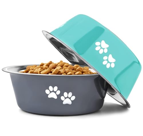 YUDANSI Hundskålar 2-pack medelstora hundar matskålar mat vattenskålar med halkfri silikonsula, rostfritt stål hundrätter förhöjd husdjursmatare (6,6 koppar)