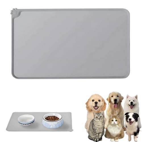HhBdy fodermatta katter 48 x 30 cm, skålunderlägg silikon, hundskål, underlag, foderskål, underlägg, katt, vattentät och inte för matskålar, vattenskål, matmatta (grå)