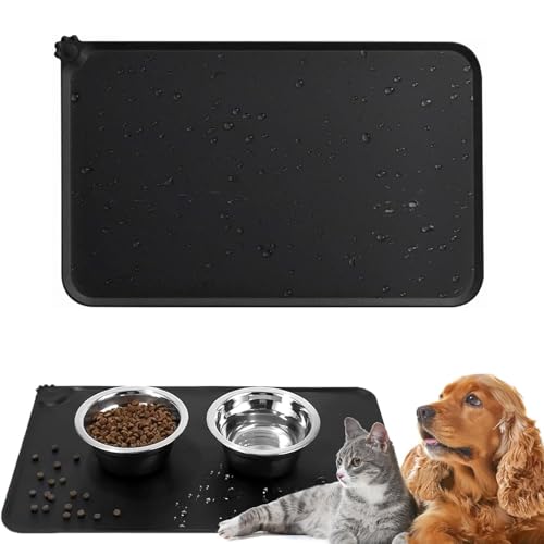 Skålunderlägg hund katter, fodermattor för hundar, vattentät och halkfri silikon matskål, för matskålar vattenskål, fodermatta, 48 x 30 cm, svart