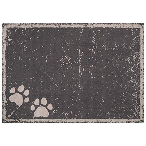 Hanse Home Pets skålunderlägg – matskålsunderlägg för hund hundfilt vattentät lättskött halkfri tass-design för inomhus och utomhus underlag för hundskål – grå, 100 x 140 cm