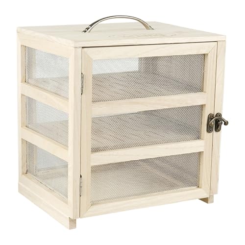 Faveco 544238 Matskydd liten modell L 23 cm B 18 cm H 24 cm - perfekt för förvaring av ost och pålägg, 2 avtagbara brickor - i trä, med metallhandtag